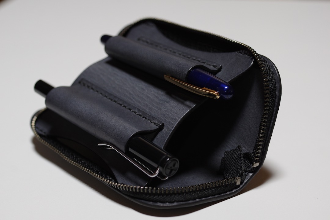 試行錯誤した結果、革の特性を生かした可動式のペンホルダーを取り付けることにしました。