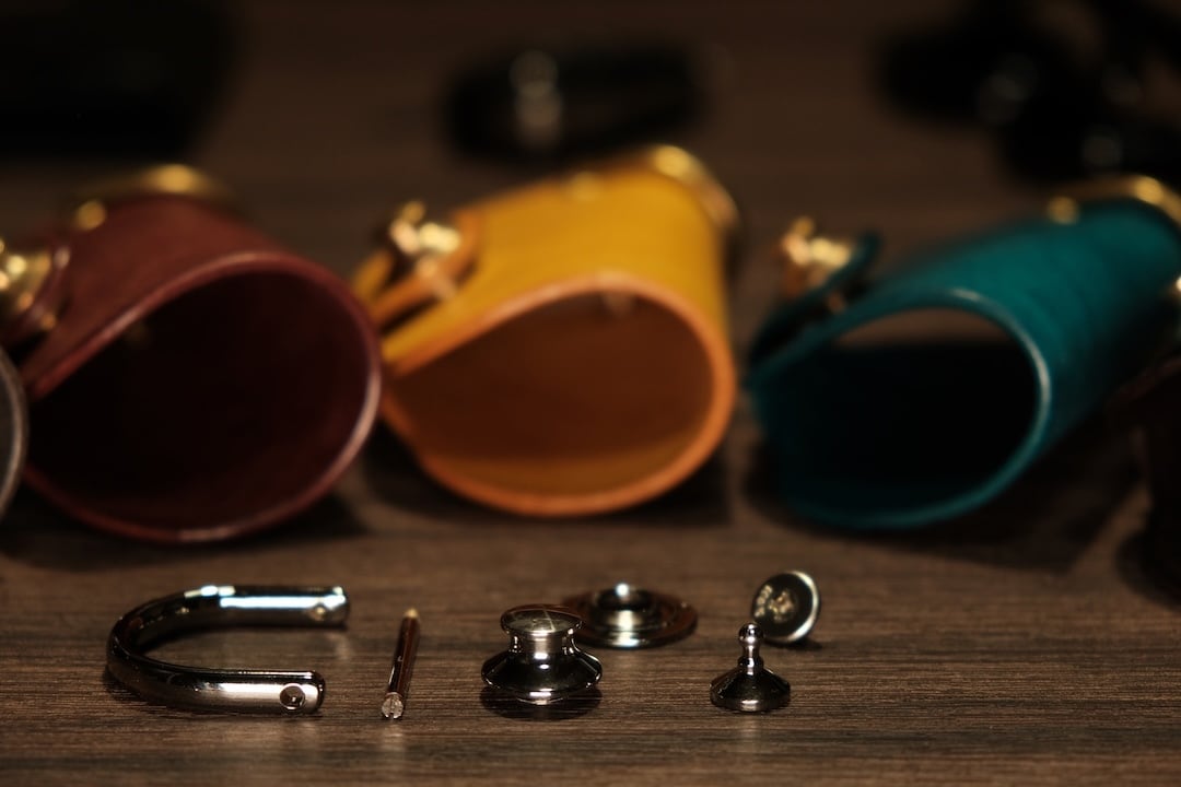 使用している金具はハトメを含む全てが真鍮製ですので、革の経年変化に合わせてご使用になれます。